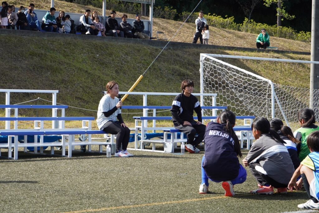 特別ゲストには、元日本代表の岩渕真奈さん、柏木陽介さんが来てくださいました。最後のトークセッションで、お二方からは、「1日で上手くなろうとしても絶対になることはないし継続していくことでいろんなことを得ることができてやっと上手くなる」ということや、「自分の武器を伸ばしていくことの大切さ」を教わりました。最後にはサイン入りグッズが当たる、大抽選会が行われ、とても盛り上がっていました。