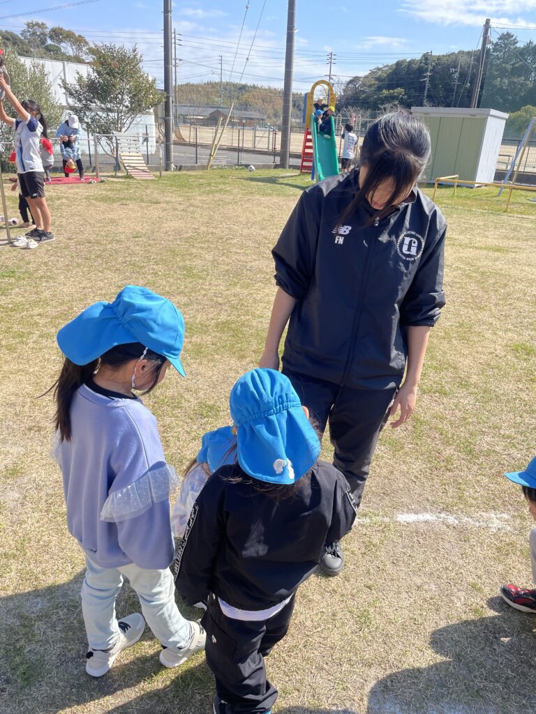 しかし、一緒にサッカーをしたり、鬼ごっこをしたりする中で、少しずつ緊張がほぐれ、徐々に笑顔も増えて、最終的には選手たち自身も心から楽しんで活動することができました。